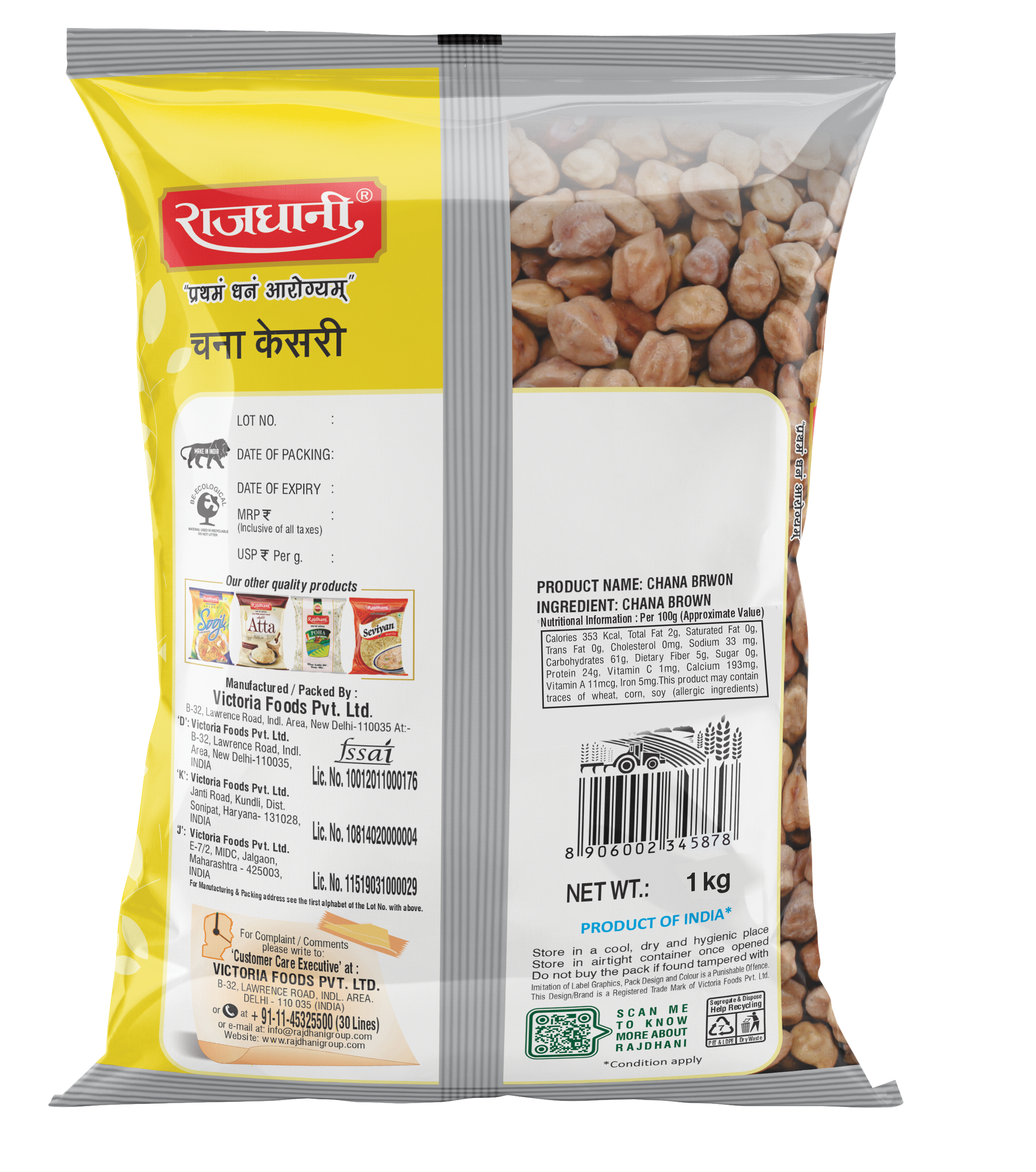 Channa Kesari brown is an excellent source of protein and fiber. Widely used in curries, boiled, fried, and sprouted, it helps in boosting the immune system, promotes muscle mass, and regulates diabetes.
